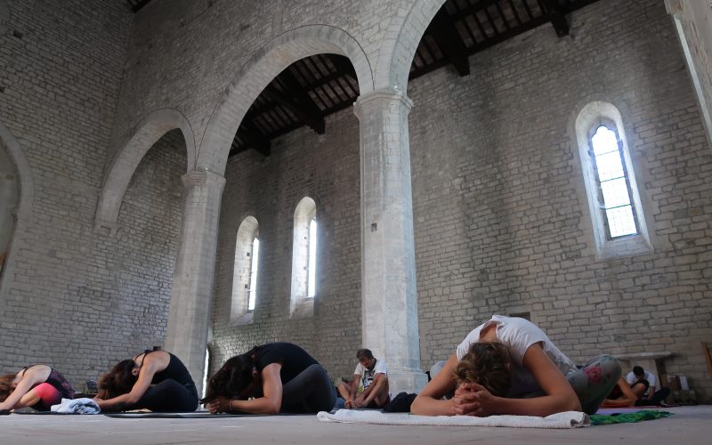 MATTINO: Il Secondo giorno la pratica di Hatha Yoga Asana Tradizionale incentrata sulla corretta esecuzione dei piegamenti in avanti si farà all’interno di una bellissima Abbazia dei Templari del 1240 dalle 7.00 alle 8.30.